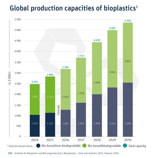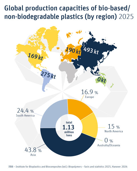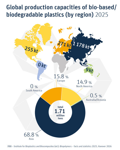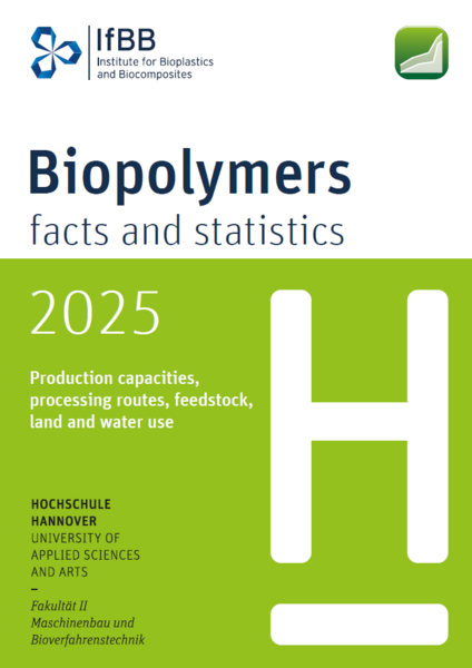 Hier erhalten Sie die frei verfügbare IfBB-Broschüre "Biopolymers - facts and statistics", Ausgaben 2024 und 2025, inklusive der Prozessrouten aller betrachteten Biokunststoffe sowie Daten zu Wasser- und Ressourcenverbrauch als Gesamtausgabe.