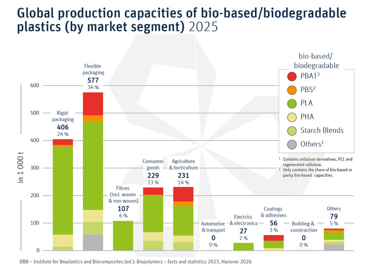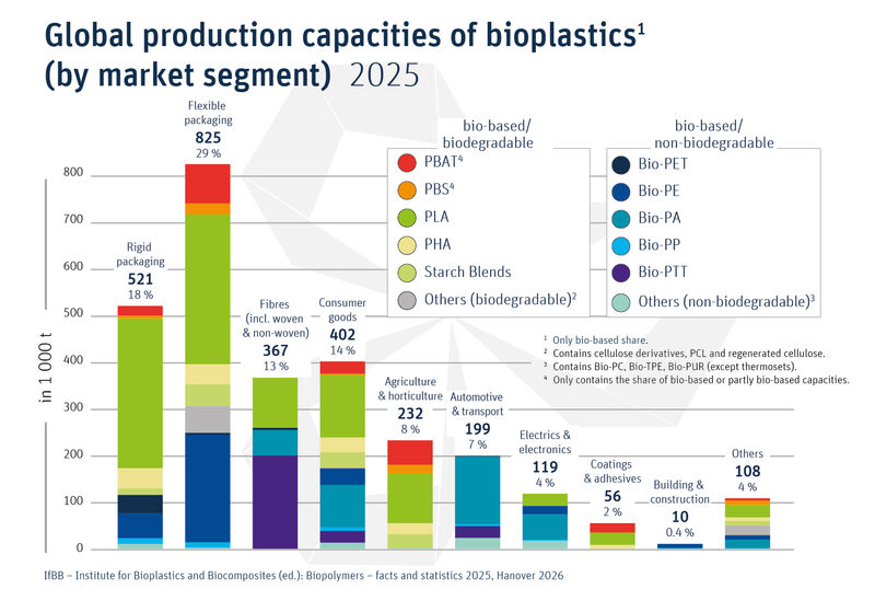 Global production capacities of bioplastics by market segment 2025