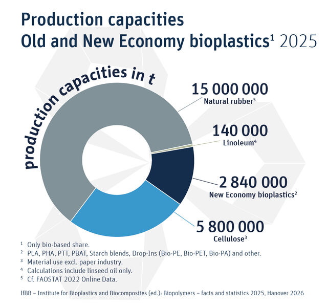 Production capacities Old and New Economy bioplastics 2025