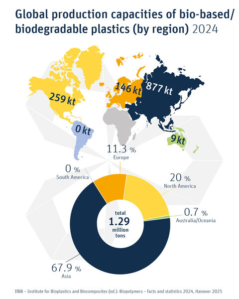 Global production capacities of bio-based/biodegradable plastics by region 2024